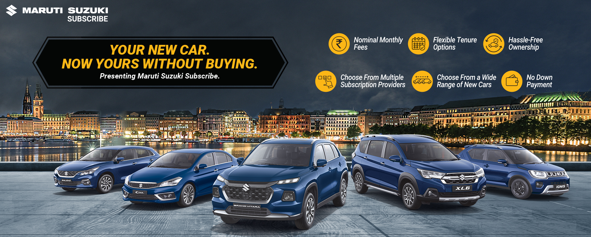 Maruti Suzuki Subscribe enables all customers to enjoy driving their preferred Maruti Suzuki cars without having to deal with all the financial responsibilities that come with owning a car.All you need to do is opt for a monthly subscription plan at a fixed monthly fee, which includes the routine maintenance and insurance costs, and choose a flexible tenure. At Eakansh Motors in, Ambala Road, Kaithal, all Hatchback, Sedan, SUV, the MUV models line-up includes Baleno, Invicto, EVitara, Jimny, Ciaz, Ignis, Fronx, Grand Vitara, XL6. Here, you will enjoy Maruti Suzuki Subscribe benefits such as: